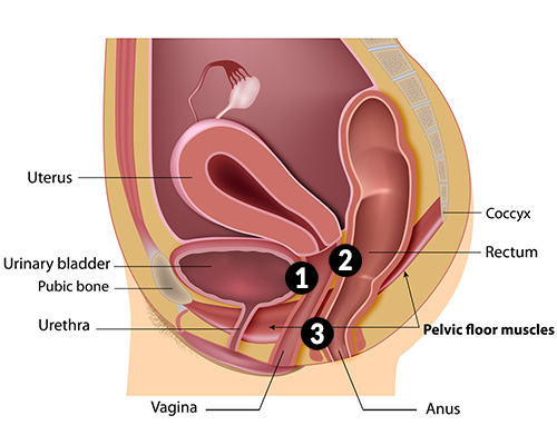 The most common fistulas in women are between the vagina and bladder (1), vagina and colon (2), or vagina and rectum (3). These openings allow urine and fecal matter to enter the vaginal cavity.