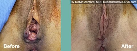 A vaginoplasty brings the separated muscles together, and the extra mucosa skin from the back side of the vagina is removed. The tissue between the vagina and rectum is tightened. The external skin can also be removed for a more aesthetic appearance.